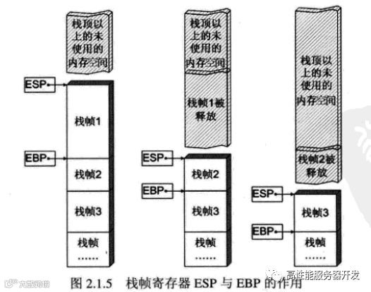 寄存器对栈帧的标识作用如图2.1.5所示