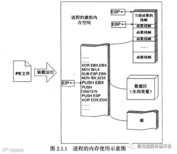 题外话:这种简单的内存划分方式是为了让您能够更容易地理解程序的运行机制入理解计算机系统》一书中有更详细的关于内存使用的论述,如有兴趣可参考之。
