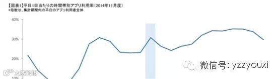 日本地区用户APP使用率超过30%的时间段为“7点~7点59分”、“12点~12点59分”、“17点~22点59分”。这三个时间段中“7点~7点59分”和“17点~22点59分”在一般意义上属于非工作、学习时间,“12点~12点59分”属于午休时间。从APP种类上来说午休时间“通信类”的使用率达到45.2%、其次是“游戏类”(13.1%)。
