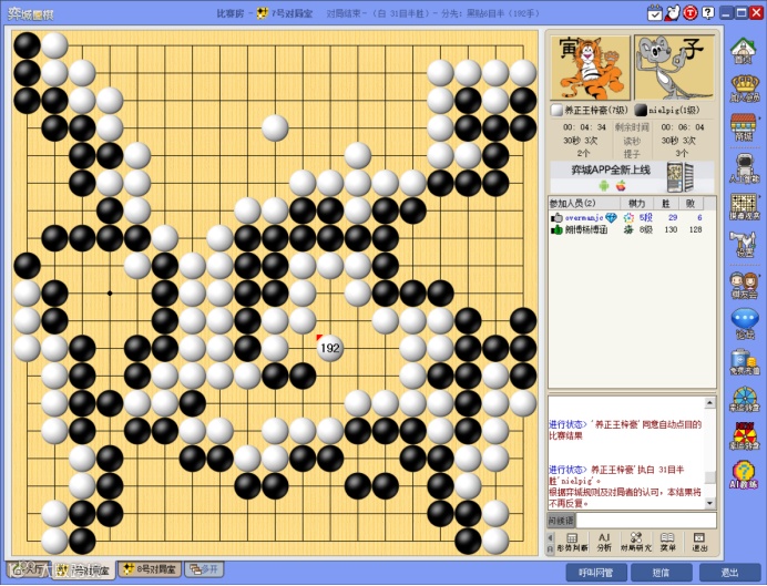 养正王梓豪执白 31目半胜 Lee Daniel。