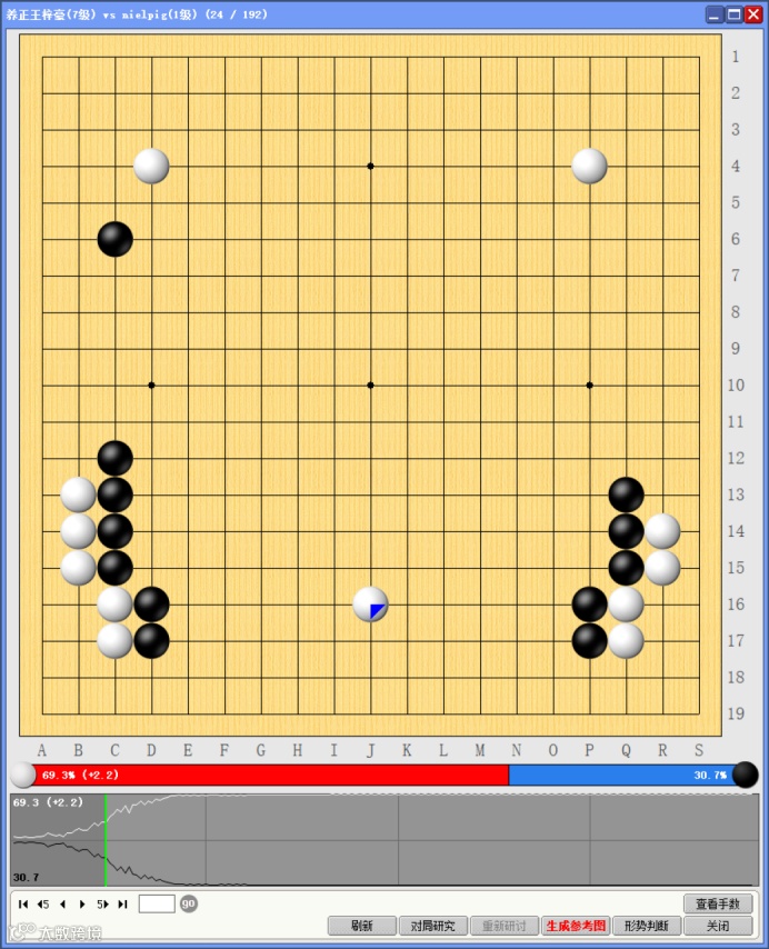 黑白双方进入“恨空”模式,都见不得对方成空,受情绪所驱马上打入对方领地,却忽略了上方最大的开阔处……