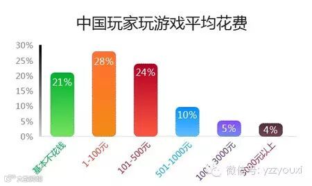 Everyplay调研显示,美国玩家平均每月会玩超过2款游戏,平均每月支出4美元。此外,另外一部分被称作“巨鲸”的重度手游玩家每月支出会超过20 美元、50美元甚至还会更高一些。如果说在美国手游市场,游戏月消费达到150元至300元人民币即可算作“巨鲸”用户的话,中国“巨鲸”玩家的消费能力要更高。来自当乐的调研数据显示,月消费500元至3000元的玩家总数达到了19%。