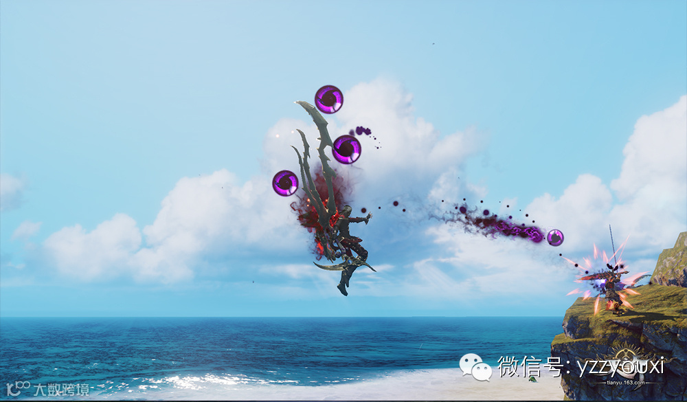 玩家在翅膀状态下可以使用空战技能,每个职业的空战技能都不相同,且有大量的无锁定技能,不但可以空对空,还可以进行空对地、地对空,空战不限定区域,可以在整个世界任意区域展开翅膀进行战斗(除部分副本、竞技场之外)。让玩家战个痛快!