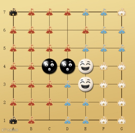 阶段3的局面也由7路棋盘构成,比起阶段2来说更加复杂、计算量更高,涉及围棋中“连接分断”、“延气紧气”这2个核心板块。