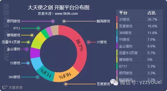 网页游戏市场获得成功的很大因素是联合运营,《大天使之剑》之所以能取得今天的成绩,除了产品本身品质过硬之外,也离不开各大联运平台对其的支持。其中百度游戏、YY游戏、360游戏、金山游戏等四大平台更是把《大天使之剑》作为其平台的主推游戏,从第三方公布的开服数据我们可以看到,《大天使之剑》主运营平台37游戏总开服数只占市场总数的36.7%,百度游戏、360游戏分别占有16.6%和11.8%,多个平台运用自身的推广渠道,把游戏覆盖到上亿级的游戏玩家当中,实现了最大范围的渠道推广和品牌覆盖。