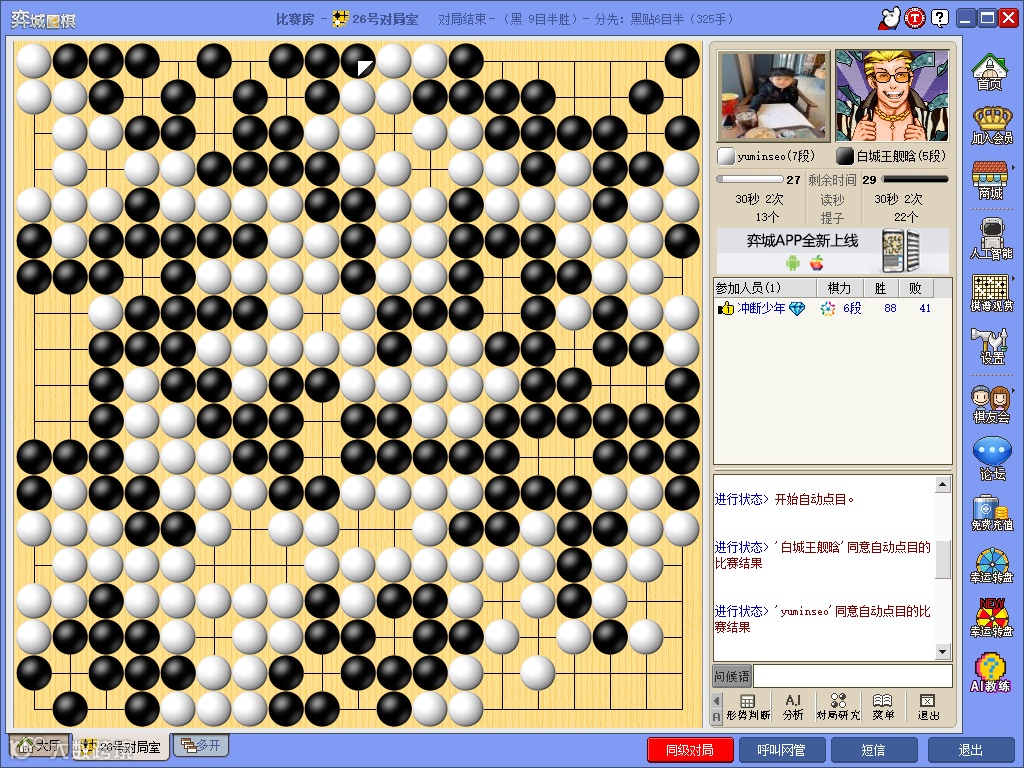 2、依据弈城分先黑贴6目半竞赛规则进行比赛。