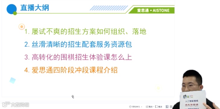 在直播中,胡子老师说出超级霸气的一句话:“只要家长带孩子来上体验课,我就能让他签约。” 这句话令当天在线观看的众多老师们印象深刻,会后纷纷向胡子老师咨询请教招生技巧。