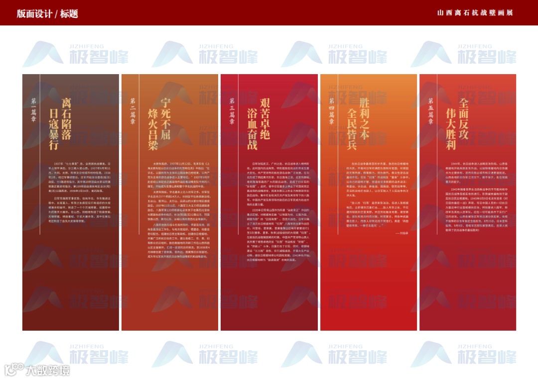 当四十幅创作于1949年的吕梁抗战壁画需要集结展出,极智峰面对的挑战是如何在有限空间内,让这段波澜壮阔的历史自己发声。我们的解决方案清晰而坚定:以系统性内容设计为先导,以精准现场搭建为骨架,最终让“山河沦陷→烽火吕梁→浴血奋战→全民皆兵→伟大胜利”的五大篇章,化身为一条直击人心的历史长廊。