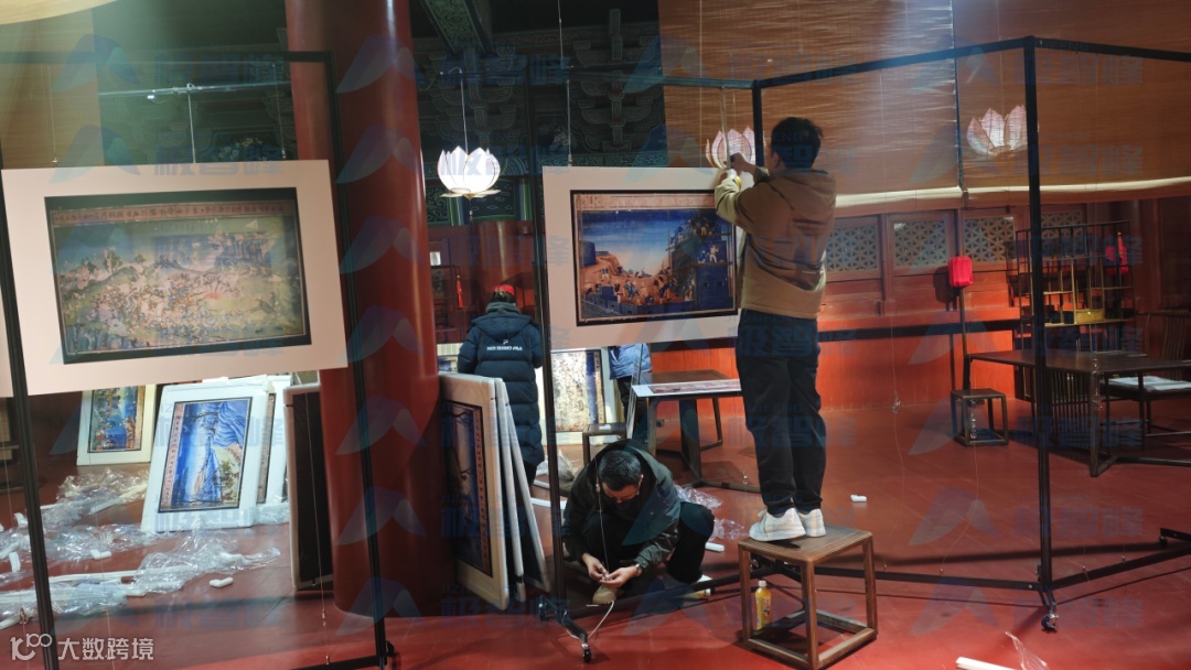 这是最具仪式感的环节。安装团队严格按照排版设计的顺序,将四十幅画卷逐一悬挂上架。他们耐心调整每一幅画的位置与角度,确保视觉上的连贯与精确。这个过程,是对设计方案的忠实还原,更是对历史作品的崇高致敬。