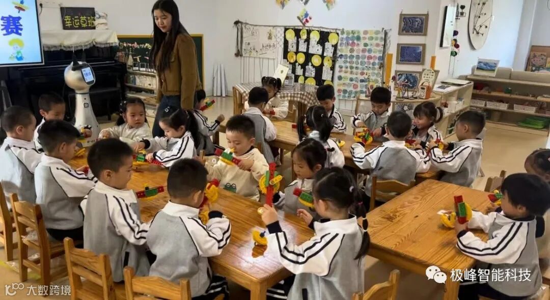 它来啦它来啦,在小朋友的热烈欢迎声中,可爱的机器人老师“法宝”走来啦!人工智能的神奇让孩子们的探索欲望无限畅游。