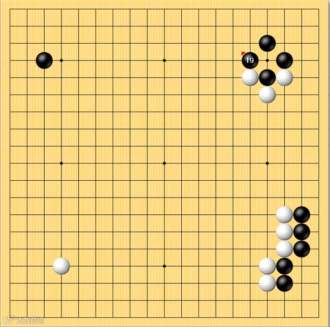 开局不久王奕阁就充分展示了人工智能围棋小棋手的创造性,右上角第19手黑棋不接而选择了“鼓”住,体现了王奕阁不拘泥于技巧,根据局面做出符合内心构想的攻杀型行棋风格。虽然理论上这样的下法单纯增加了自身负担,但因为初期劫材不好找的原因,黑棋局部劫争胜利后反而小有获利。