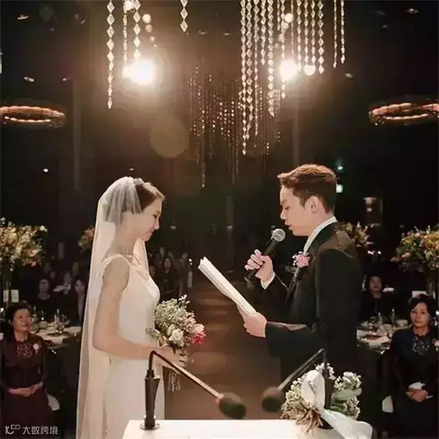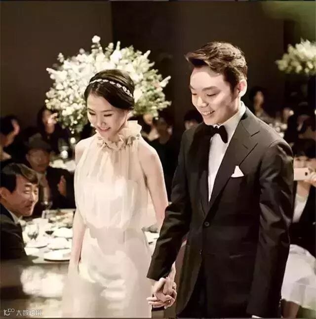 夫妇俩去年举办的婚礼,婚礼的婚纱和礼服也是情侣装的即视感。