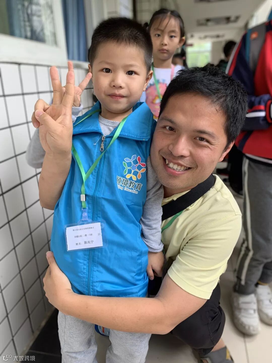 陈兆宁(小名:笑笑)与爸爸一同参赛