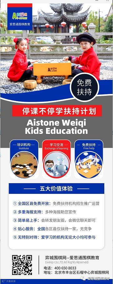 在足不出户的特殊时期,在线下教学完全停滞的关键节点,围棋机构突如其来转入到线上时代,爱思通人工智能围棋教育植根于网络,依托弈城发展,在线上的招生、推广、运营方面有其独特的天然优势。下一步,我们将针对无爱思通签约机构的区县,进行招生、推广、运营的全面帮扶。