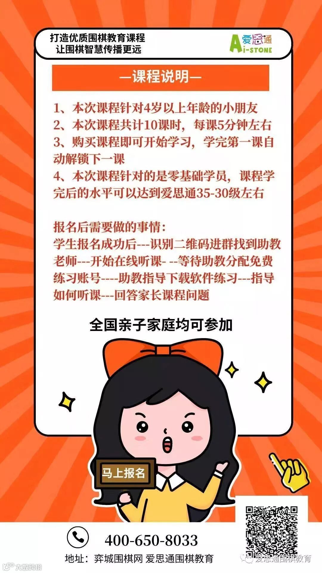 作为成熟的人工智能围棋教育机构,爱思通具有完备、令人信服的宣传海报,详尽的大数据支撑,足以打动广大适龄家长群体,最大限度转化潜在学员,为您的机构宣传锦上添花。