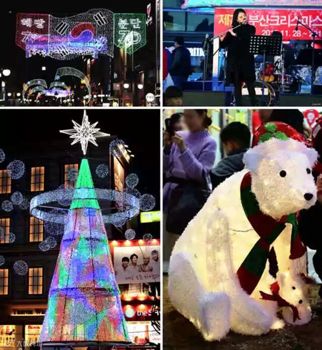虽然釜山圣诞树文化节已经进行了将近一个月,但今年的南浦洞比去年更漂亮。人山人海,非常热闹。另外,圣诞树文化节的光影中,还被巧妙融入了“韩国光复70周年”纪念的元素,小伙伴们不妨去看看。