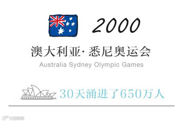 2000年的悉尼奥运会期间,从澳大利亚各大城市口岸入境的游客总数居然突破了650万,一时间,整个澳大利亚的旅游战线全面告急,除了全民老少齐上阵外,还特别从世界各国征调了几万名奥运会志愿者来帮忙。要知道,直到2015年,到澳大利亚旅游的全球游客数才达到690万。也就是说,当年的悉尼奥运会为澳大利亚带来了多少旅游经济和就业机会。