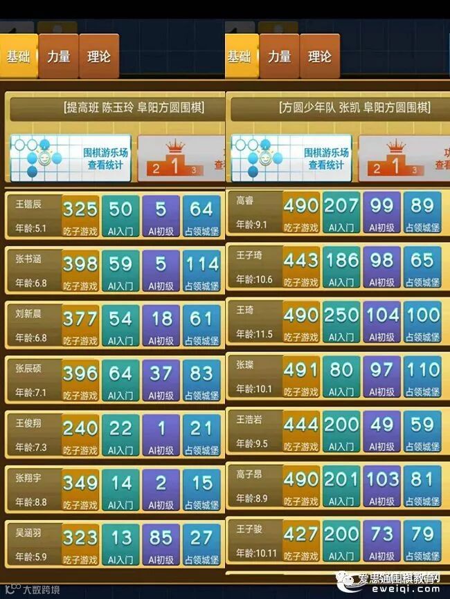 经历了半年的实践探索过程,在今年11月阜阳市秋季围棋级位赛中,方圆围棋俱乐部23名参赛学员,不但全部晋级成功,而且取得了7金9银4铜的骄人战绩!其中暑期开始学棋的爱思通实验班5位小学员,仅仅4个月棋龄,均取得了6战5胜佳绩,直接跳升为5级。年仅5周岁的王锴宸小朋友是本次比赛年龄最小选手,张辰硕小朋友仅用4个月时间吃子游戏已经接近400关,总关数突破700关…