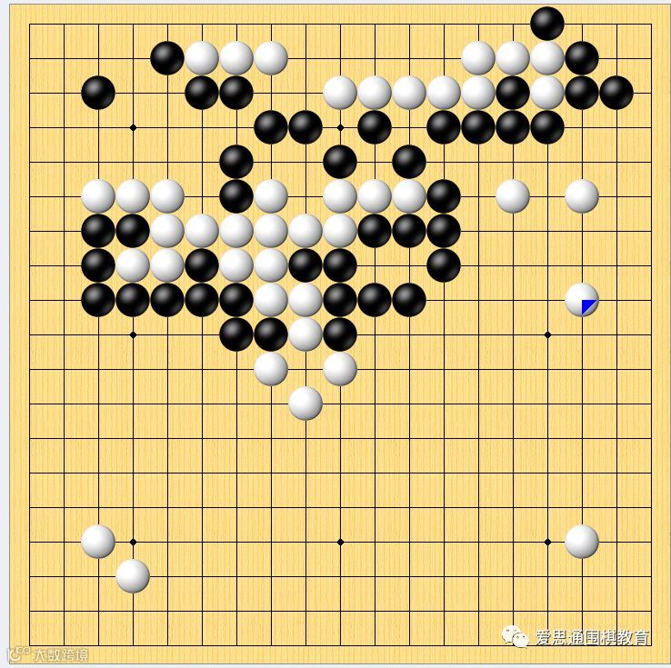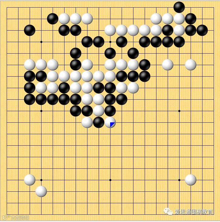 黑棋不顾自身缺陷,紧紧包围左上角陈茁大块,意欲全歼结束对局,白棋分断打吃,后续产生征子手段,迫使黑棋放弃棋筋,一举突破重围。对于孩子们来说,能够在对局牵扯到死活的关键处瞄着对方缺陷行棋,是容易摆脱困境,拒绝崩溃的的基本能力,这样的能力可以弥补很多计算力与棋理方面的不足,而早期对局,我们也根本没法要求孩子计算特别深入,行棋特别合理。因此,建立孩子通过气少、断点多、出路窄这些基本因素判断双方棋的强弱意识是启蒙教学阶段的重要任务。