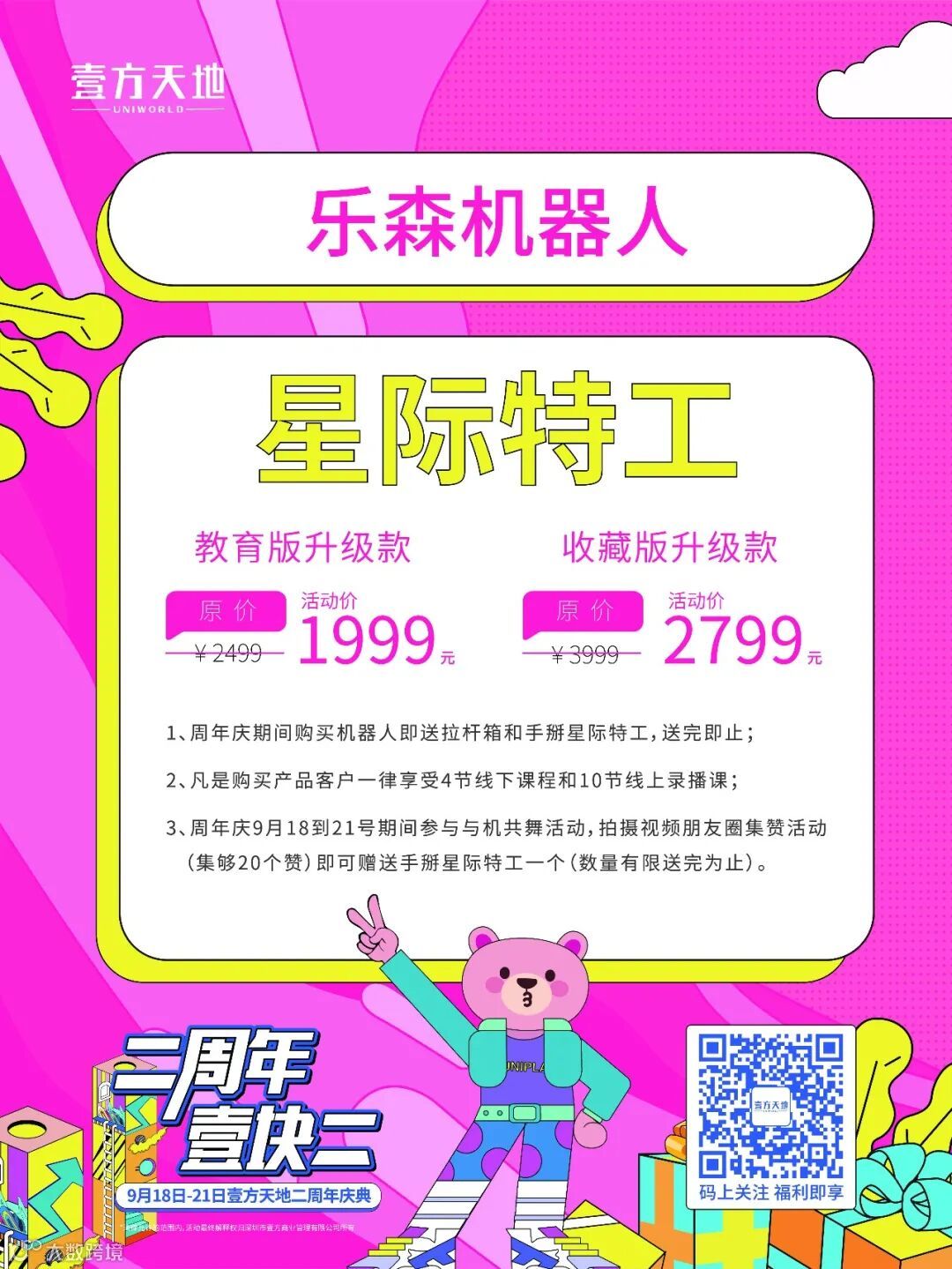 但是,成年人才做选择,小朋友们两个都要!如果现场体验不够过瘾,那就将星际特工带回家。周年庆期间,优惠可是实打实的,星际特工教育版直降500,历史最低;收藏版直降200,从前从来不打折。看中了就直接抱回家吧!