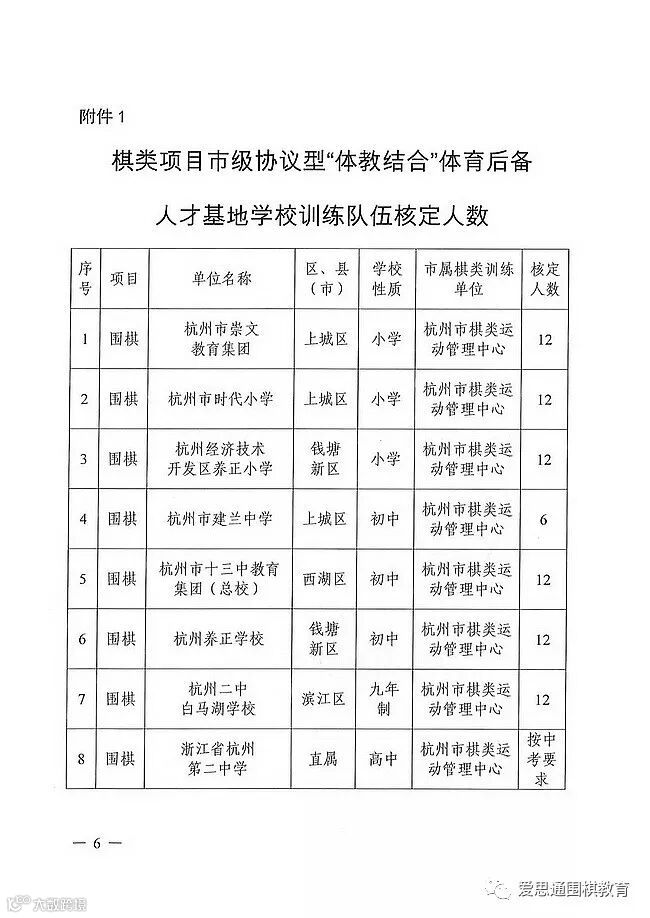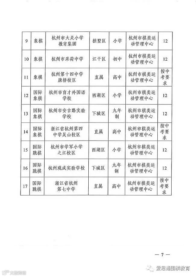 而对于家长来说,最关心的“学棋上名校”新政,也在本次会议作为重要议程出现——杭州市区总共17所知名中小学,被杭州市教育局、杭州市体育局、中国棋院杭州分院认定为棋类项目市级“体教结合”体育后备人才基地学校。17所名校负责人还在现场参加了授牌仪式,未来三年,他们都将向杭州市少儿四棋集训队中具备优异棋类项目潜质的孩子敞开大门,提供学籍和各项教学训练保障。(17所名校目录见尾页)