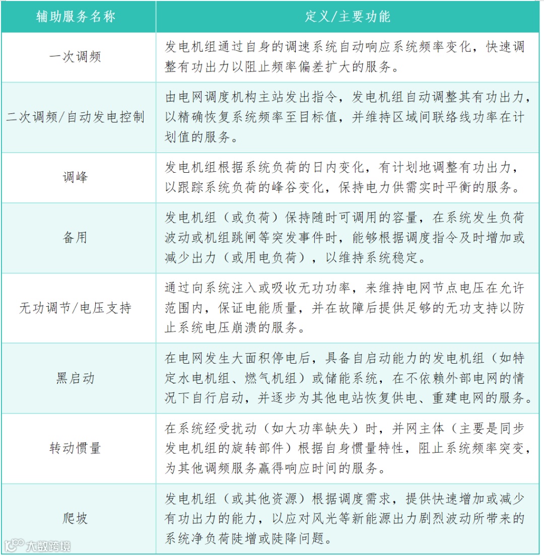 电力辅助服务一般是指为维持电力系统的安全稳定运行或恢复系统安全,以及为保证电能供应,满足电压、频率质量等要求所需要的一系列服务。电力辅助服务市场是遵循市场原则对提供电力辅助服务的主体因提供产品或服务发生的成本进行经济补偿的一种市场机制。可以说,它是辅助于电能量市场的一种特殊市场,兼具实物和服务市场的双重特征,既体现在功能上支撑电力现货市场运营,保障电力系统安全运行和电能质量,又体现在价格上反映电力现货市场的机会成本,是电力现货市场不可或缺的互补性市场。