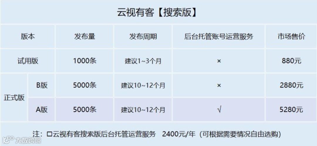 我们是有专业短视频运营团队的,帮你做托管再合适不过了。再说一年2400的后台托管运营费用,真不高。给开个户卖你一套软件产品这并不是我们的初衷,出不了效果,回过头来说这产品不行。我们真的不建议,除非你是真的有专业运营人员帮你去托管。