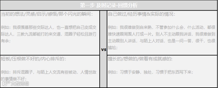 自我认知3步表中的第一步:及时记录,回馈分析。