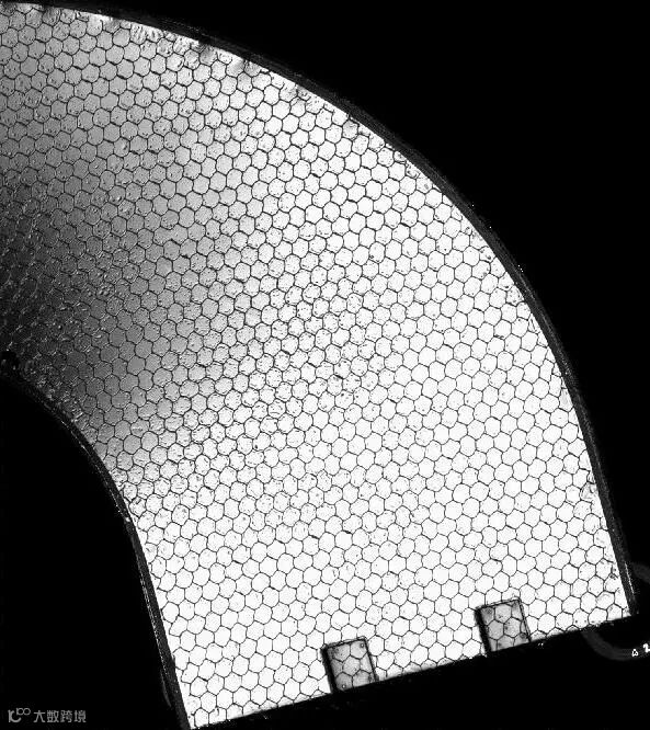 通过航空盘环件水浸超声SAM检测超声C扫描图像中我们可以清晰看到,曲面环形蜂窝板内部凹坑、裂纹、空洞、未焊合等缺陷。