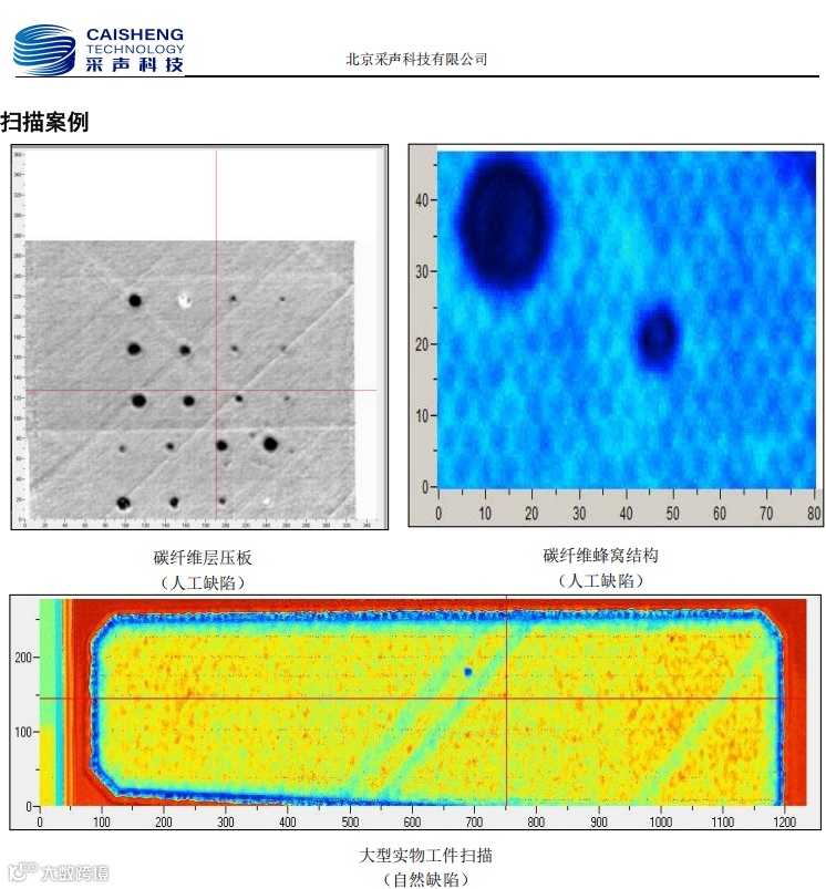 (3)纤维缺陷:纤维断裂、褶皱或排列紊乱(如铺层过程中纤维偏移),会改变超声波的传播路径,导致信号 “相位偏移” 或 “波形畸变”,可识别纤维缺陷的分布区域;