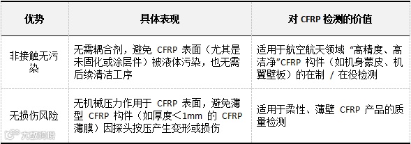 该技术特别适用于碳纤维复合材料(Carbon Fiber Reinforced Polymer,CFRP)的质量检测,能有效解决传统接触式超声检测在 CFRP 检测中存在的耦合剂污染、自动化效率低等问题。