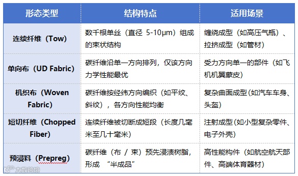 为了适配不同的产品结构(平板、曲面、复杂构件),碳纤维增强体会被加工成不同的形态,常见的有以下几种: