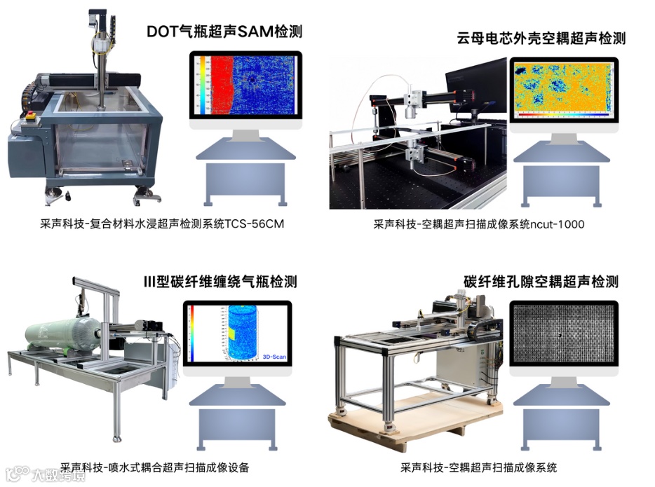 以上设备针对复合材料检测技术很早就开始了,声发射技术、水浸超声C扫描、喷水耦合超声、空气耦合超声等几种方式,对复合材料工艺研究以及工程应用产生了极大的推动作用。