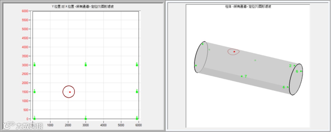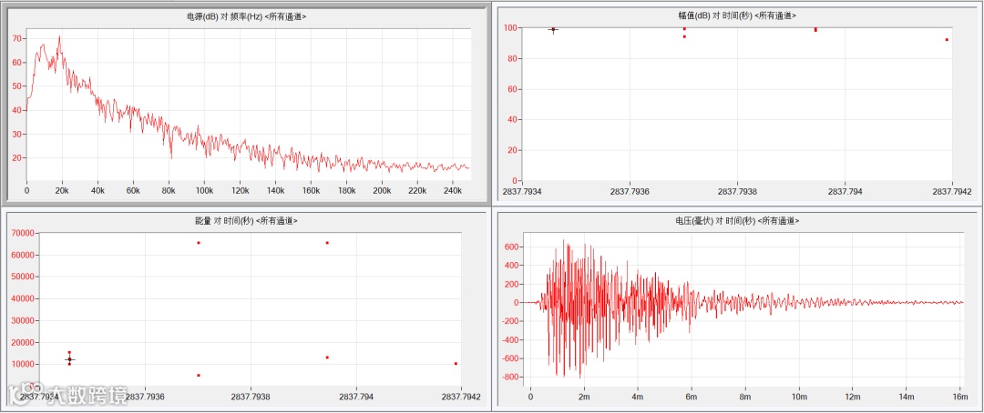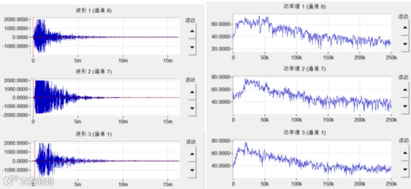 PCCP输水管采用大中心冲冲击钢丝15次,进行实时监测,观察各个通道感应的信号幅度的变化
