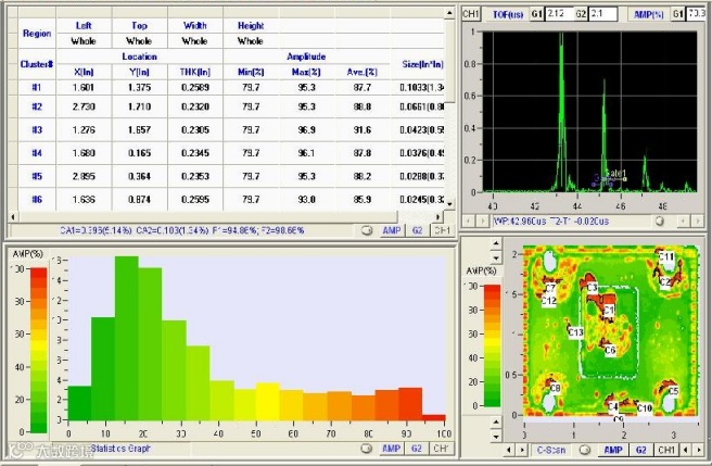 注意:以下检测结果C扫描图像均采用北京采声科技研发水浸超声设备