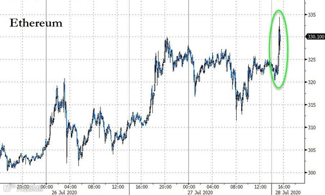 稍早,现货黄金突破1960美元/盎司关口,直奔2000美元而去;现货白银日内涨幅接近4%,价格突破25美元。有评论称,在全球收益率跌至接近历史低点的背景下,负收益债券规模再次回升,国际政治经济局势紧张,避险情绪严重,资金需要寻找新的投资替代品。因此,作为低成本财富储存工具的贵金属和数字货币更具吸引力,齐头上涨。