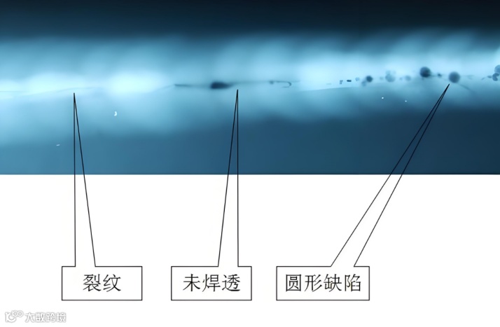 X-ray射线检测(RT)是利用射线对材料或工件进行透照的衰减系数差,检测内部缺陷根据衍射特性对其晶体结构进行分析的技术,在底片中呈现黑白影像,以此判断被检测物体是否存在缺陷。这种方法可以检测到表面和深层的缺陷,其检测深度大、灵敏度高、检测速度快,但对环境要求高,需要在较为封闭的环境中进行,以保证检测现场的安全和卫生。