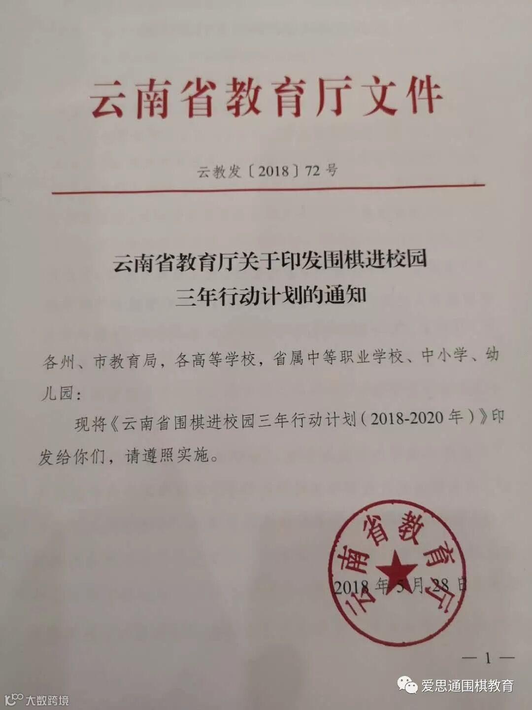 此次云南进校园计划,既有顶层设计,又有工作布局,特别是有支撑的条件。由教育主管部门、学生体育部门、围棋协会加热心的赞助单位:北京的弈城围棋和云南的云子围棋,这四个结合给云南的围棋进校园提供了有力保障。今天我拿到这份文件,虽然只有四页纸,但是它沉甸甸的,指明了一条可以实施的围棋进校园之路。”