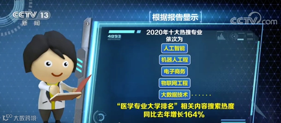 日前,《百度2020年高考搜索大数据报告》公布,报告显示,2020年十大热搜专业为:人工智能、机器人工程、电子商务、物联网工程、大数据技术、网络与新媒体、网络空间安全、软件工程、学前教育、临床医学。其中,“医学专业大学排名”相关内容搜索热度同比去年增长164%。