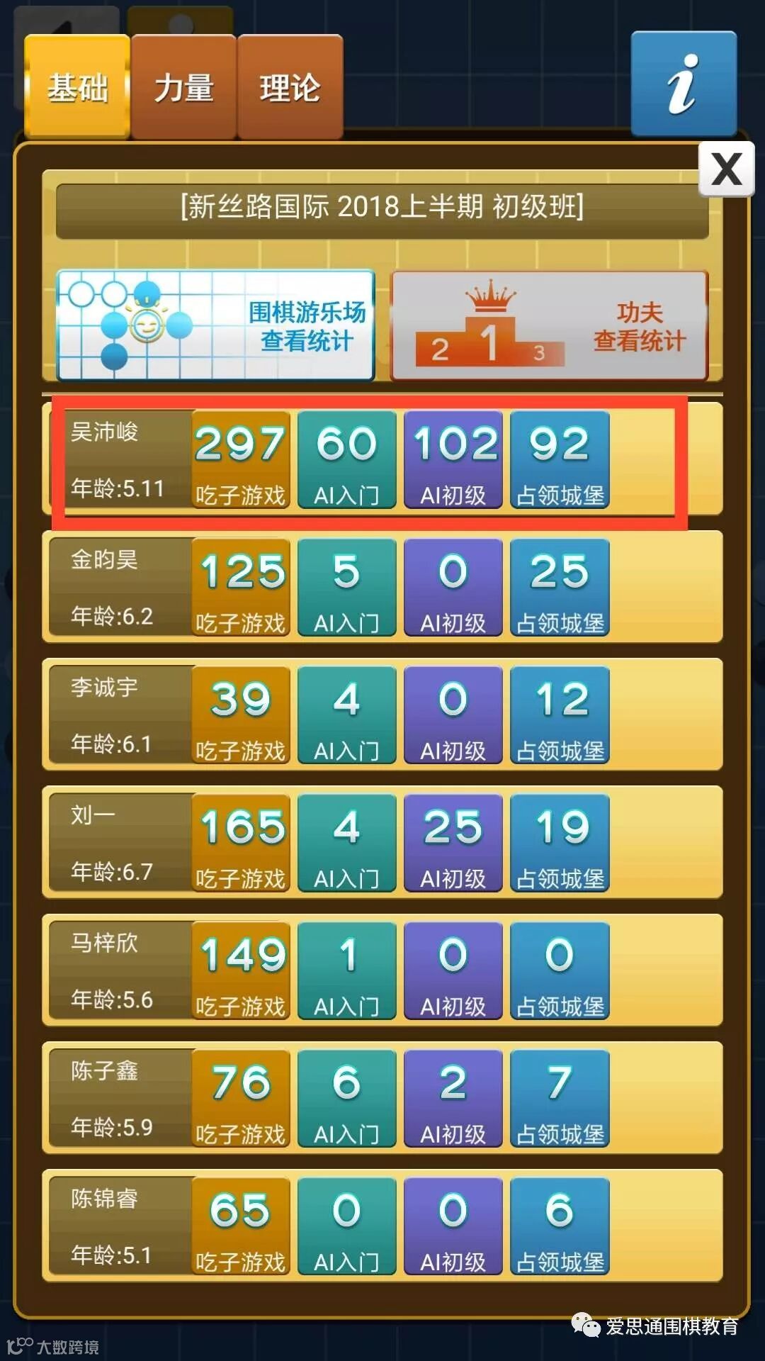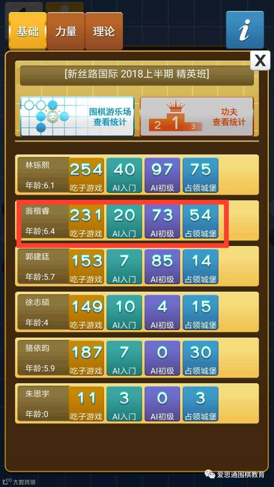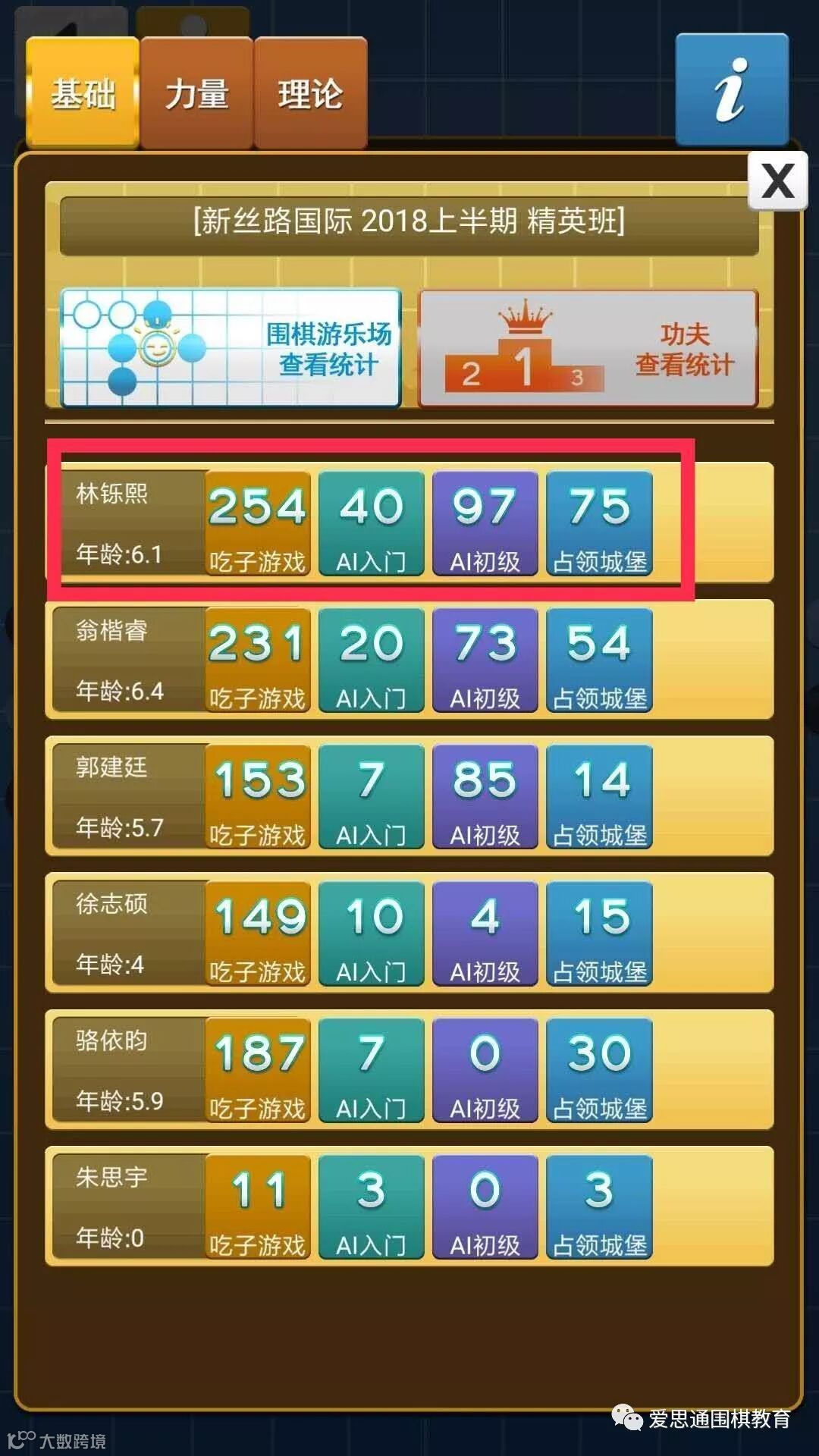 截止小编发文前,宾王棋院的爱思通宝贝们在兴趣和老师科学的引导下进步飞快。四岁的宝贝们主要以兴趣为主,五岁的宝贝们主要发掘潜能,通过爱思通自适应学习训练,有天赋的宝贝们在后台数据的对比下直接显现出来。