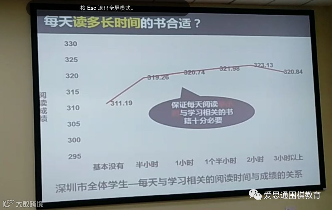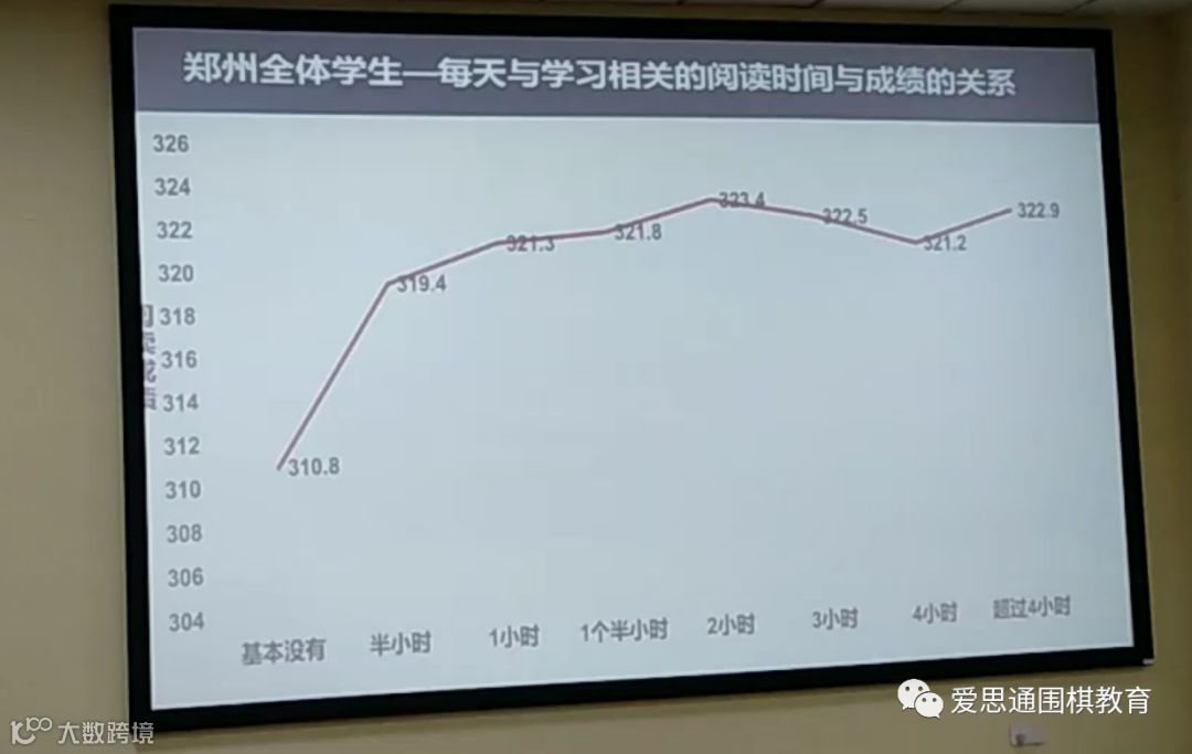 第二是“给时间”。我在深圳跟家长说,时间现在都被习题占领了。习题做得多,学生就聪明吗?未必!要让学生选择,让学生运动,让学生思考,让学生下棋。我给大家一个数据看。我们做了一个非常严谨的教育质量监测:《每天与学习相关的阅读时间与成绩的关系》,呈现出如图的状态。