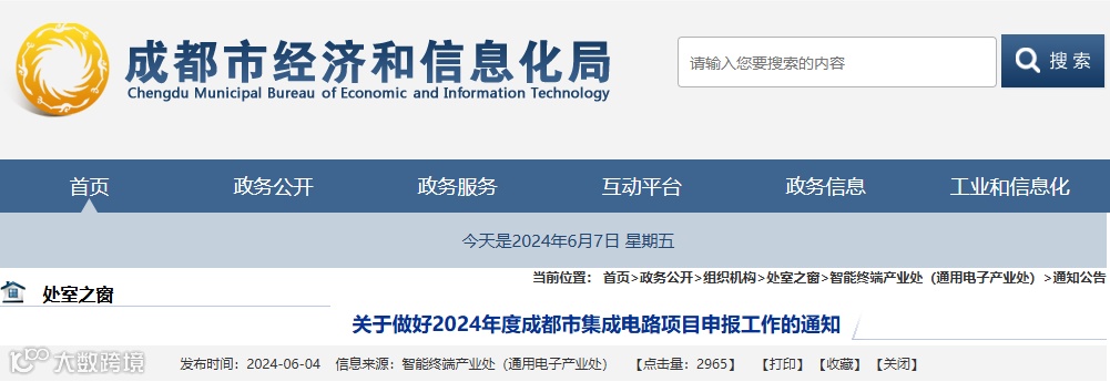 根据《成都市加快集成电路产业高质量发展的若干政策》(成经信发〔2023〕4号)、《成都市加快集成电路产业高质量发展的若干政策实施细则》(成经信办〔2023〕17号),现将2024年度成都市集成电路项目申报工作有关事项通知如下。