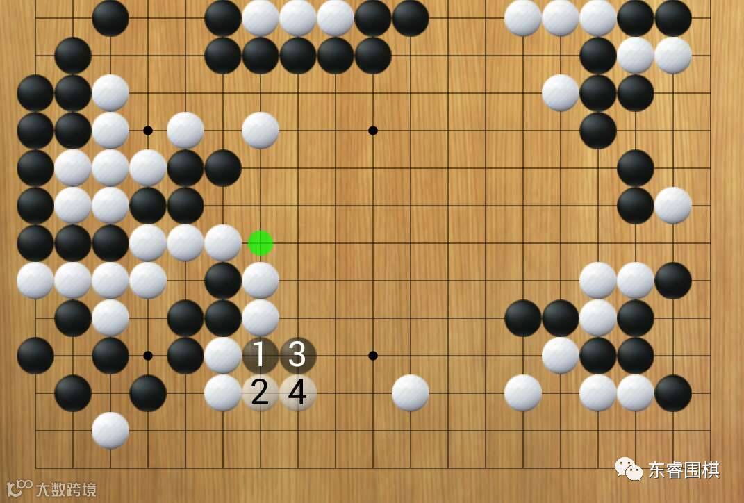 之后黑提白中腹四子,白棋通连即可满足。以最小的代价,换来了黑下边一块,当然已经大赚特赚。