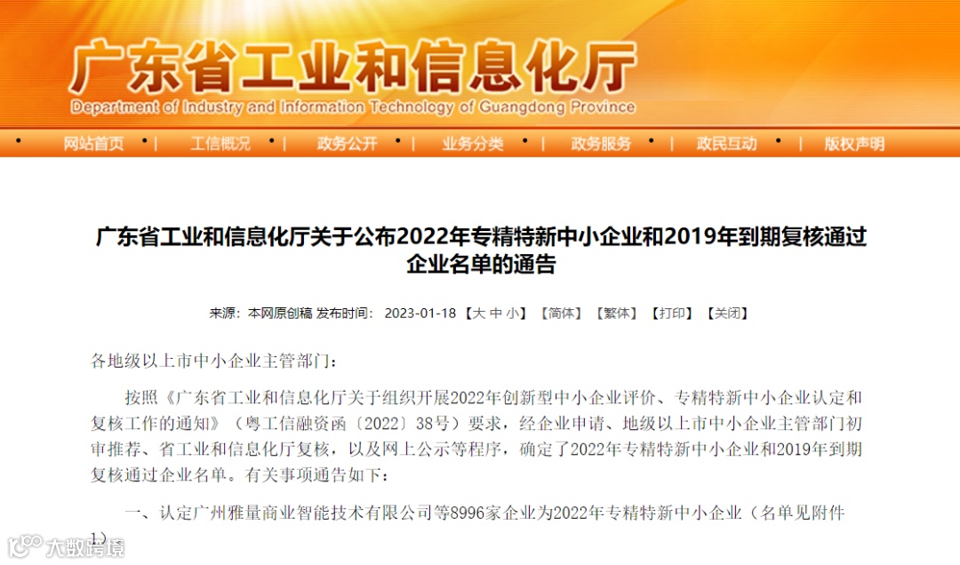 近日,广东省工业和信息化厅发布的“关于2022年专精特新中小企业和2019年到期复核通过企业名单的公示”的公示期已届满。博士科技正式入选广东省2022年"专精特新"中小企业榜单。