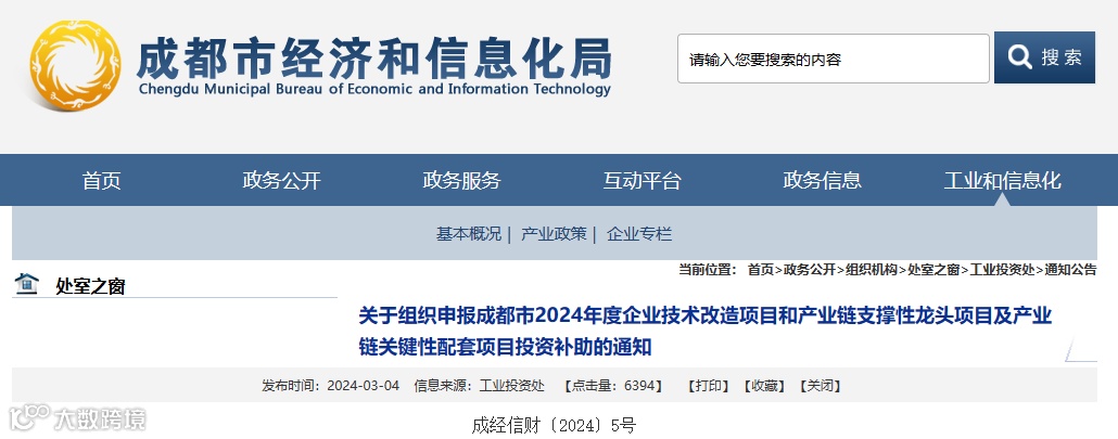 根据成都市人民政府《关于印发成都市支持制造业高质量发展若干政策措施的通知》(成府规〔2023〕2号),成都市经济和信息化局等12部门《关于印发成都市支持制造业高质量发展若干政策措施实施细则的通知》(成经信办〔2023〕44号),市委办公厅、市政府办公厅《关于印发促进民营经济健康发展7个实施细则的通知》(〔2019〕-2)文件要求,现将全市2024年度技术改造项目和产业链支撑性龙头项目、产业链关键性配套项目申报工作有关事项通知如下。