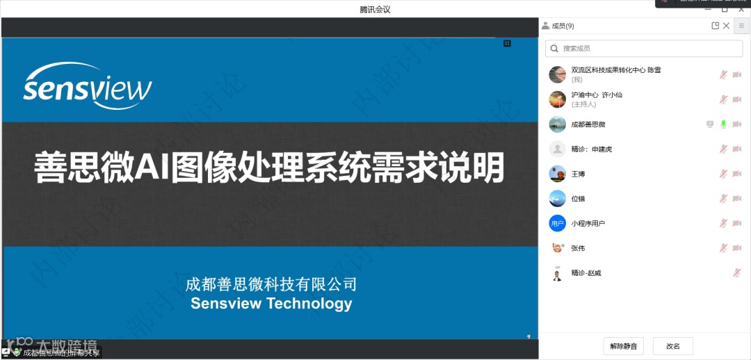 重庆清仪微系统研究院团队、成都善思微科技有限公司企业代表、双流区科技成果转化和技术交易中心代表及沪渝协同创新中心代表共计9人参会。继上一次初步沟通后,本次是第二次线上对接,会上,成都善思微科技有限公司同重庆清仪微系统研究院团队就“AI对辐射成像图像增强的应用技术”合作事宜展开深层次沟通,双方已达成初步立项合作。