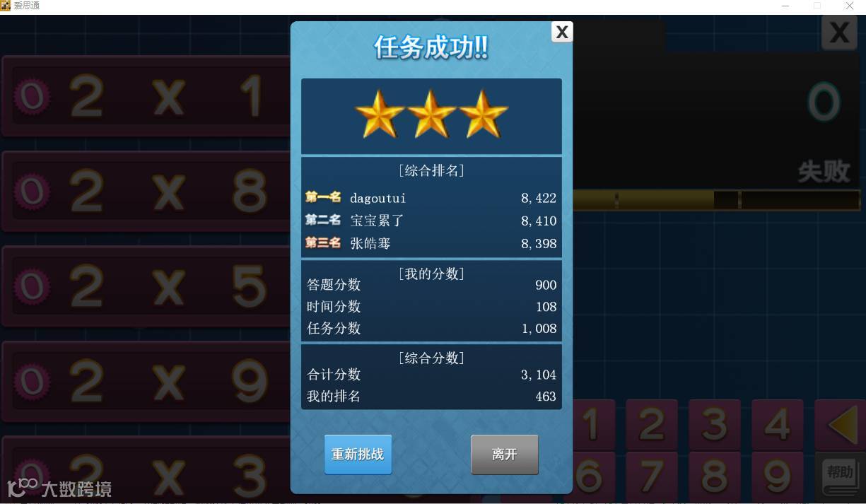 当孩子们掌握了9×9的运算规律后,打开挑战页面: