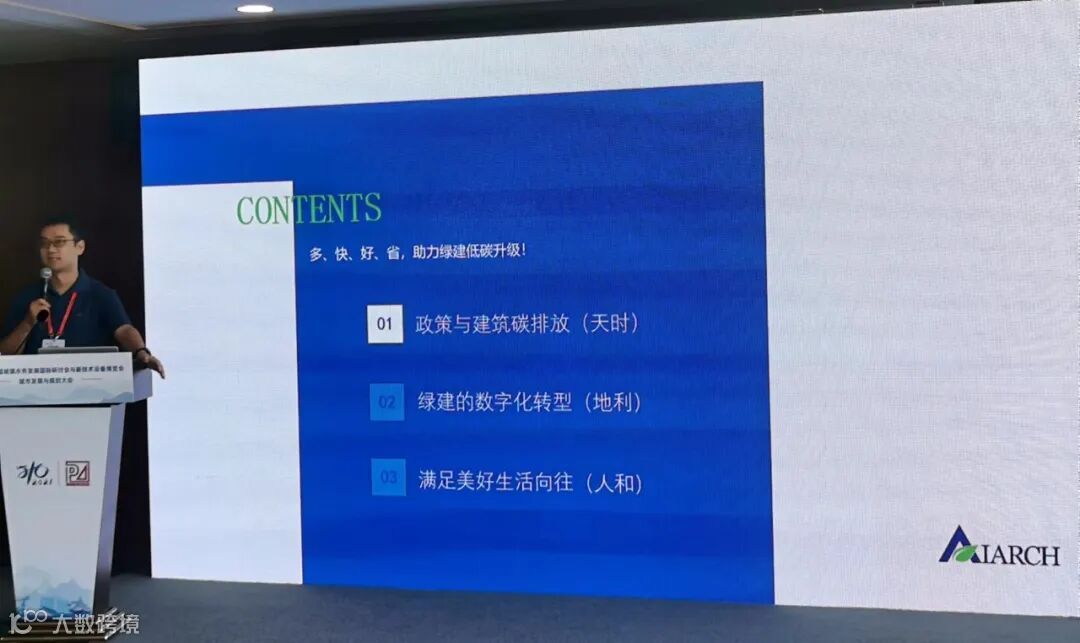 禾筑数字创始人陈栋梁受邀出席大会,并分论坛进行主旨演讲,分享《城市建设中的建筑碳排放监测控解决方案》的主题报告。