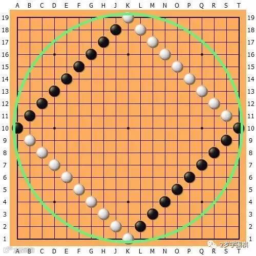 从图4和图5中可以看出,我们想像中的圆形,更接近于图4中的大方框,且图4的棋子是连续的。而图5的斜方框,与想像中的圆,差距较大,且棋子是不连续的。