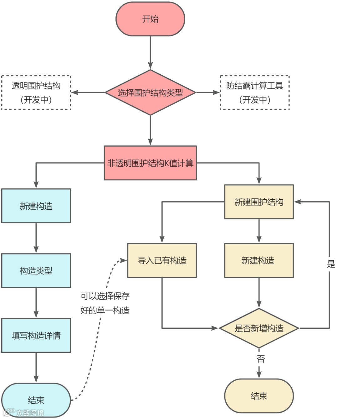 目前我们支持‘单一构造’和非均质‘围护结构’两种K值计算方法。如果外墙都是一种构造,那么就选择‘单一构造’。如果您想计算K值的外墙是多种构造拼合而成,那么就要选择‘围护结构’